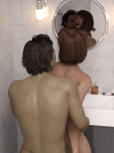 光くんは命じられるまま、鏡に向かって立ちます。西川は満足そうに微笑むと光くんの背後に回り、腰に手をかけます。